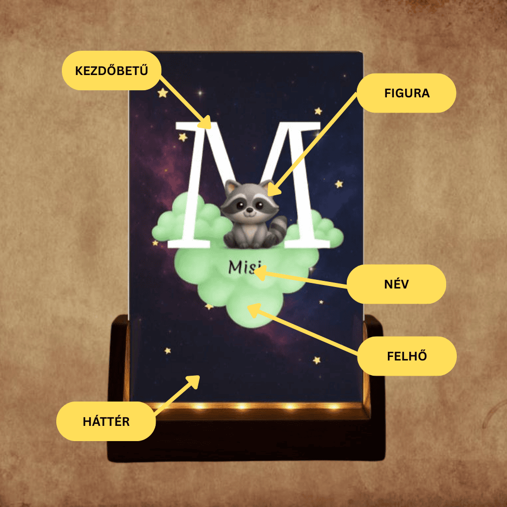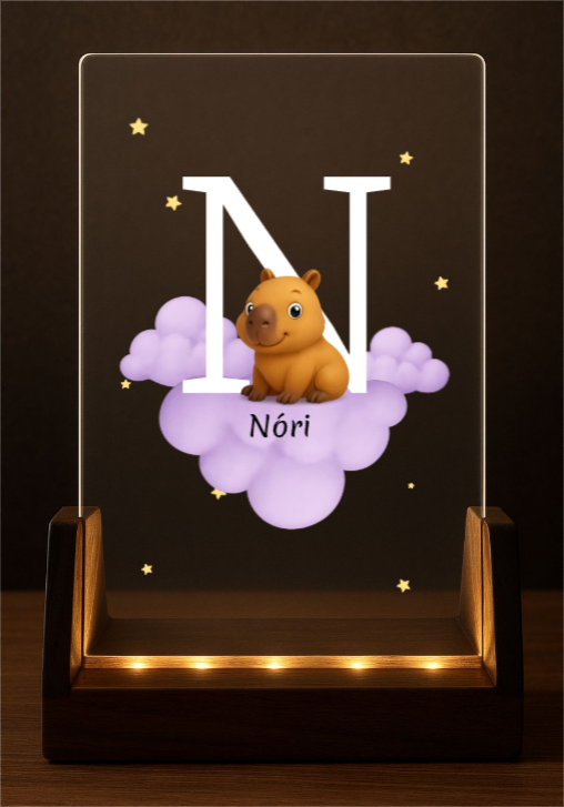 Saját kis lámpa, amit a neve és kedvenc állata díszít – igazi személyes kincs.